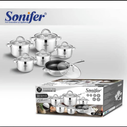 سرویس قابلمه ۱۲ پارچ برند: Sonifer با درب شیشهای مدل: SF-1144